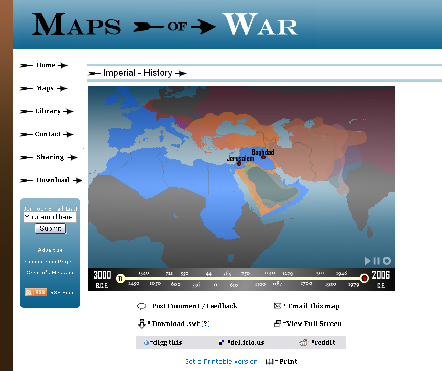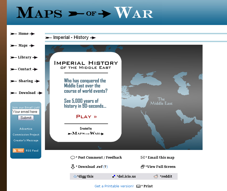 (1) Maps-of-War was established in September of 2006. The site was created to help people understand current events, as seen on TV and in our newspaper headlines, as being one small chapter in the much bigger and longer story of human history. Each map is well-researched and based in fact, and none of the work is meant to be biased or political. No spin or opinion, just fact-based conclusions about the history of war.